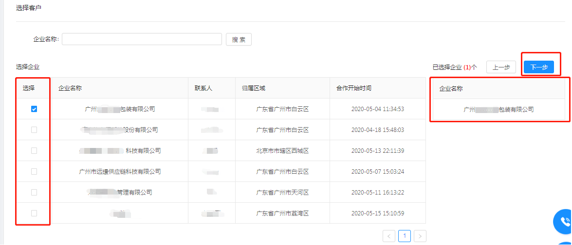查找出需要进行改价的商品的客户,已勾选客户会显示在右边勾选栏中,点击下一步。