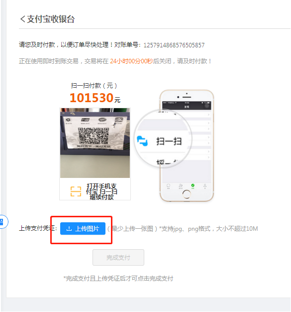 线下转账教程 第一步 在左边菜单栏点击采购对账,选择应付的账单点击付款。 第二步 选择需要支付的线下支付的方式点击立即支付,目前支持支付宝、微信、线下银行转账。 选择微信或者支付宝支付,扫码付款上传凭证,上传完成后点击完成支付,等待供应商收款审核。 线下转账完成后,上传付款凭证点击完成支付,等待供应商收款审核。