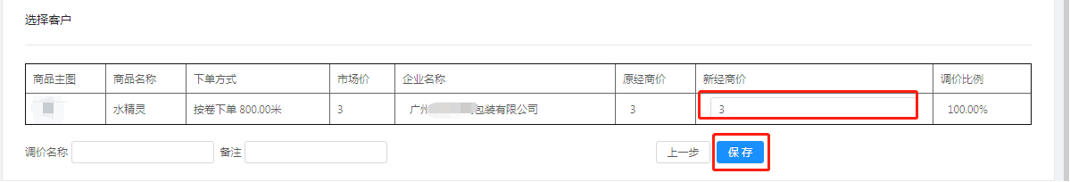 查找出需要进行改价的商品的客户,已勾选客户会显示在右边勾选栏中,点击下一步。